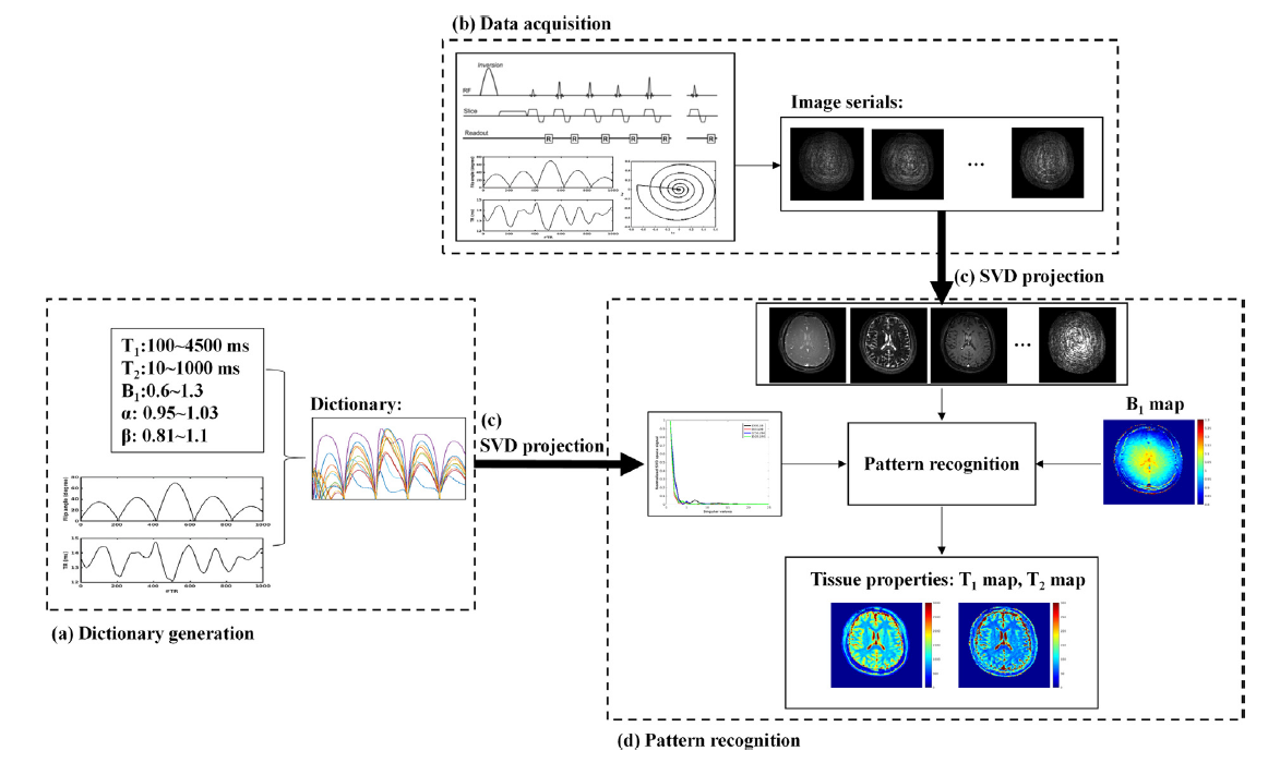 定量磁共振成像(Quantitative Magnetic Resonance Imaging, qMRI)可以取得多种人体组织的参数图像,近年来逐渐被应用于对临床疾病进行精准医疗和疾病量化分析。 然而,现在qMRI仍然存在瓶颈问题:①因为采集时间过长,导致成像易受患者运动干扰;②因为图像质量不足,导致还未仍未实现大规模的临床应用。针对这些瓶颈问题,中国科研实验室深圳先进技术研究院劳特伯生物医学成像研究中心的研究团队在定量磁共振成像领域先后取得多项研究进展,包括定量指纹成像的字典模型优化、定量指纹成像的高精度图像重建、快速定量参数成像等研究成果分别发表在Journal of Magnetic Resonance, IEEE Transactions on Medical ImagingIEEE Transactions on Biomedical Engineering等磁共振成像领域内知名期刊上。