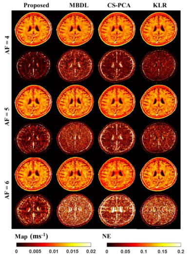 图3. 基于非线性流形学习和正则化原像约束的快速定量磁共振参数成像