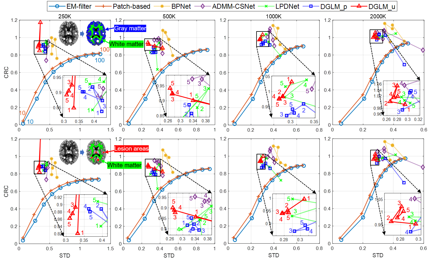 2:不同训练周期下的 CRC-STD 曲线(BrainWeb 数字模体数据)