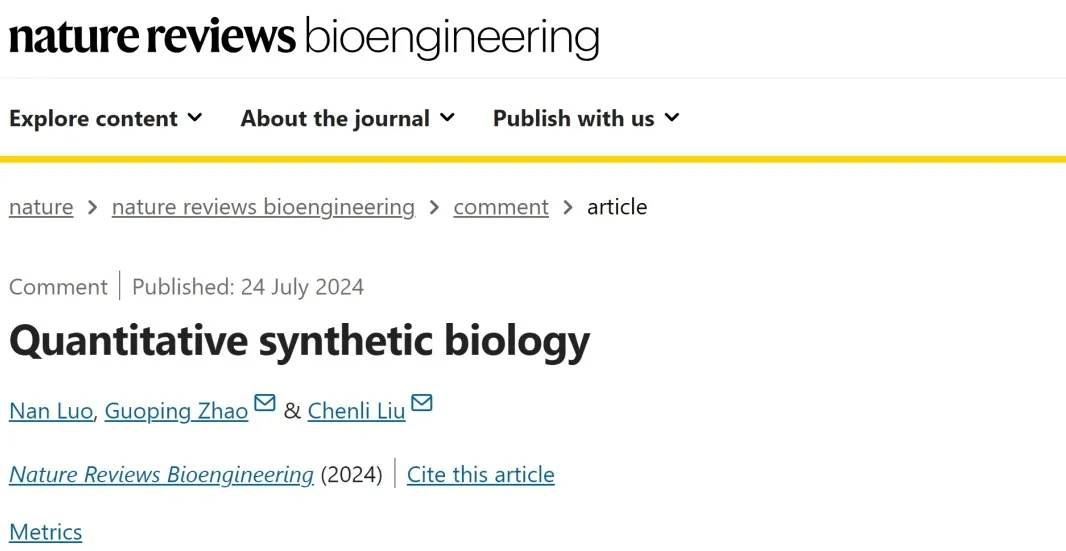 Nat. Rev. Bioeng. | 刘陈立/赵国屏:开拓“定量合成生物学”新范式,驱动复杂生物系统的理性设计