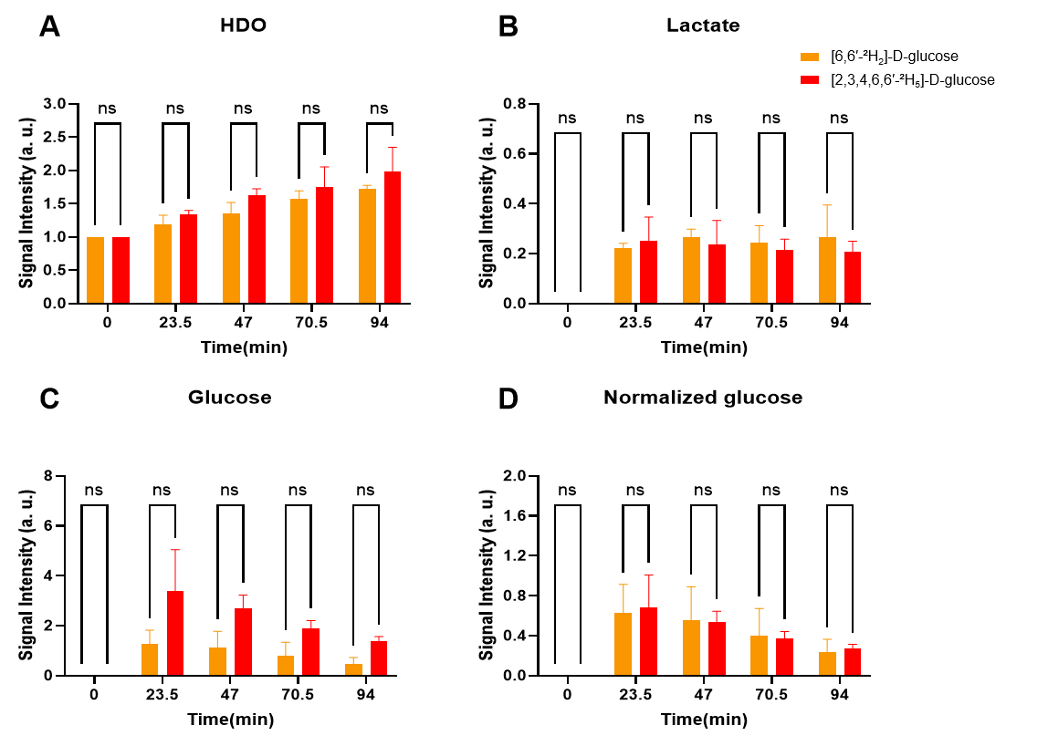 尾静脉注射[6,6′-²H₂]-D-葡萄糖与[2,3,4,6,6′-²H₅]-D-葡萄糖,肿瘤区域的代谢产物对比