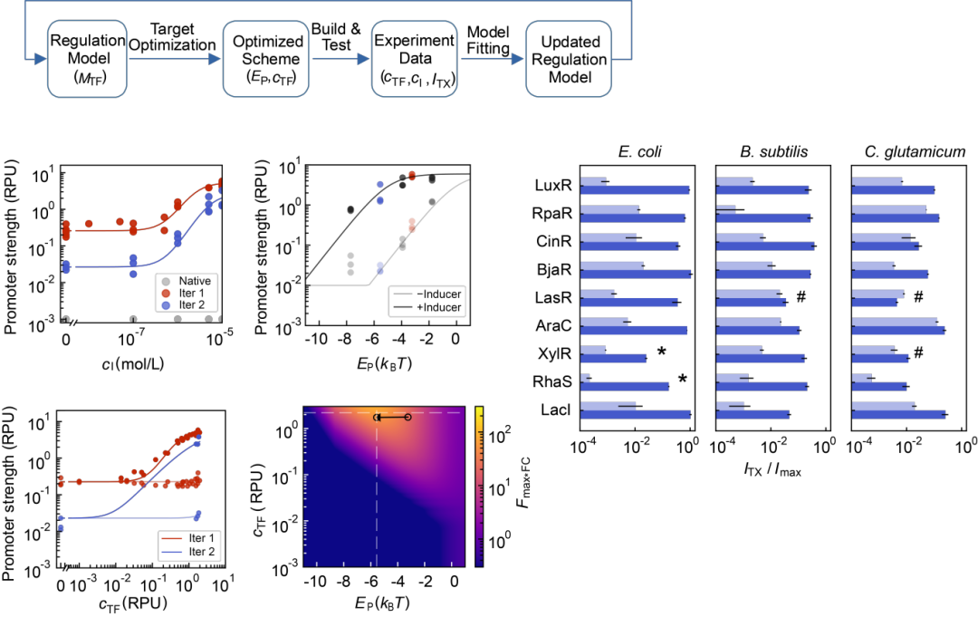 诊断(解耦与定量):该研究中使用的统一热力学模型将启动子强度(EP)、转录因子结合能(EA或 ER)以及协同激活作用(EAP)等关键变量分离并参数化,使得研究人员不再需要像传统机器学习那样依赖成千上万条数据来“喂养”模型,而是顺利获得少量的“设计-构建-测试-学习(DBTL)”循环即可快速锁定系统参数。