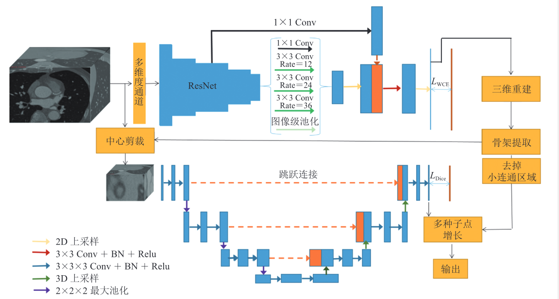 摘要:心血管疾病是一种严重危害公众健康的重大疾病。与其他心血管疾病相比,冠心病是导致死亡的最主要原因,精确的冠状动脉分割对冠心病的治疗有重要意义。现在,深度学习已经广泛应用于医学影像领域,然而,像冠状动脉这样的小物体的分割仍然是一大挑战。针对冠状动脉精确分割的需求,该研究提出了一种融合二维和三维卷积网络的方案,利用骨架作为桥梁,结合二维和三维卷积网络,扩大了卷积网络的信息接受域。与其他深度学习方法相比,该方法在敏感度、Dice 系数、ROC 曲线下方的面积、豪斯多夫距离上均有一定程度的提升,且可以检测其他方法无法识别的冠状动脉,一定程度上解决了血管断连和血管缺失等问题。