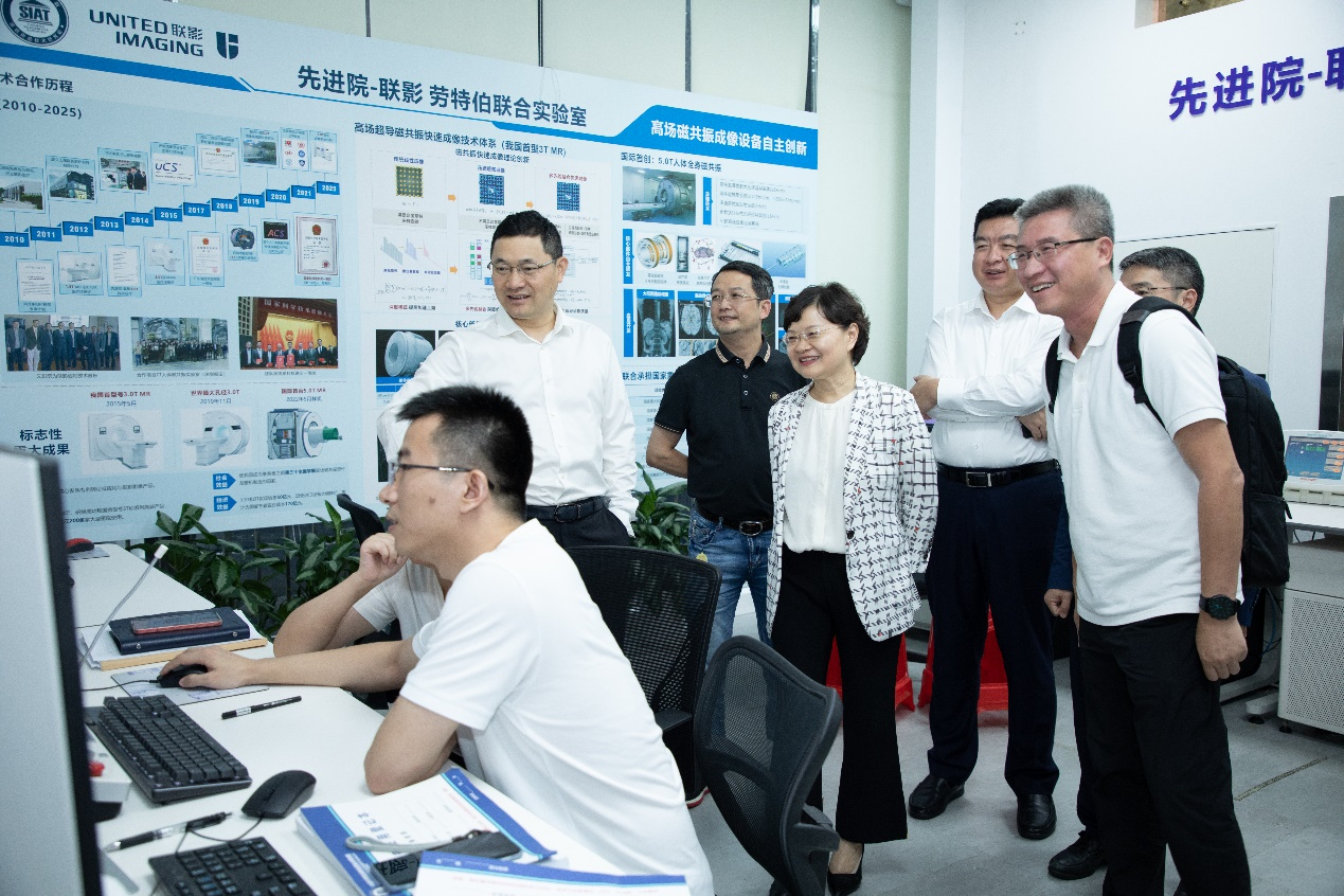 郑海荣向王月琴一行介绍了凯发k8国际在体制机制、科技创新、人才培养及成果转化等方面工作情况。随后王月琴一行先后参观生物医学与健康工程研究所、脑认知与脑疾病研究所、先进材料科学与工程研究所,听取相关部门负责人汇报。
